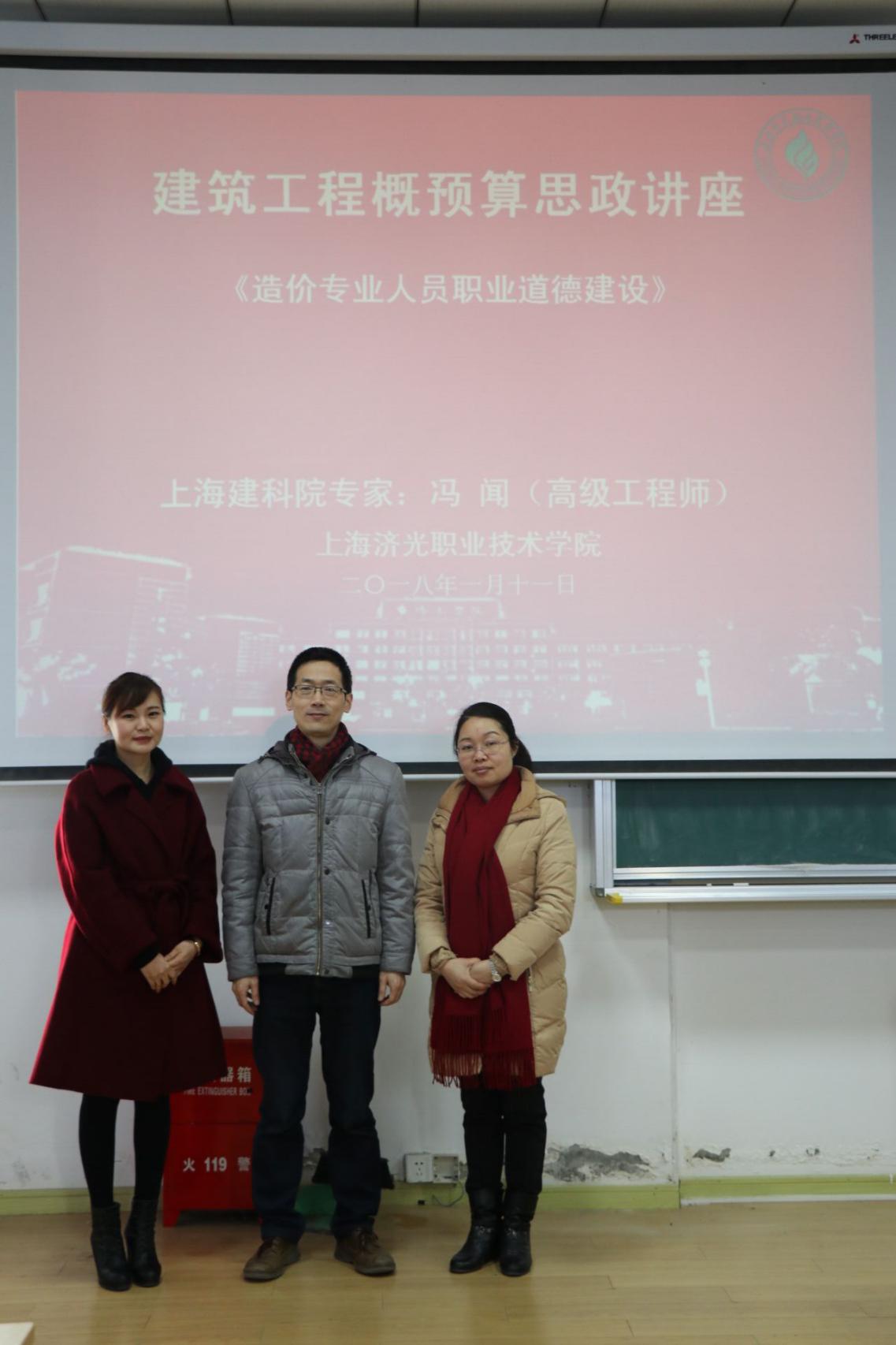 来自上海市建筑科学研究院造价工程公司的副总工程师通过“造价形势背景”“造价专业前景”、“造价专业知识储备”“争议调解”等共七个方面,以具体项目案例,带领学生感触造价职业道德建设,感知社会现实。