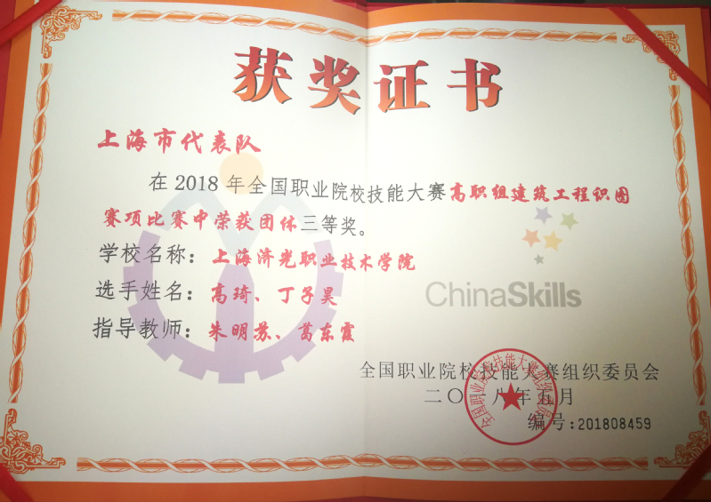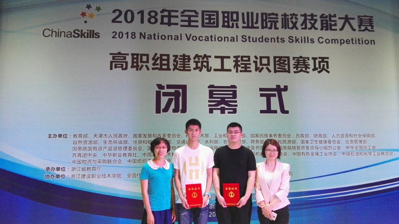 2018年全国职业院校技能大赛高职组“建筑工程识图”赛项比赛于5月26日在浙江建设职业技术学院举行,我系高琦、丁子昊同学从来自全国30个省、市、自治区的104所职业院校队伍中脱颖而出,获得团体三等奖。
