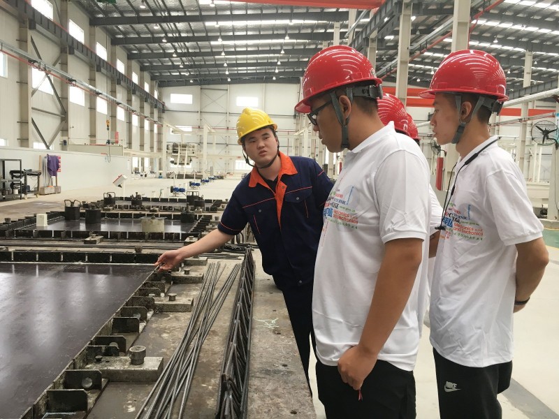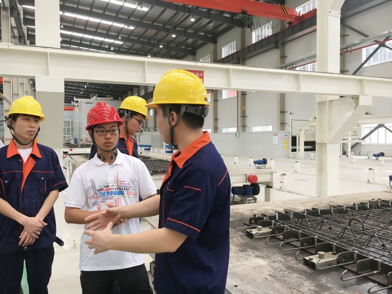 建工系党支部书记刘夏虹老师带领学生会成员来到上海汉石构件厂进行参观。早上八点钟我们在学校集合,经过2个小时的车程,来到了汉石构件厂。公司负责接待的老师,为我们介绍了装配式混凝土构件的相关知识,还带我们参观了生产流水线,对生产的每个环节都详细的给我们做介绍。