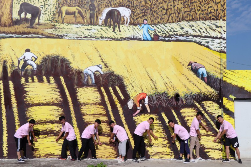 紧接着来到了吕巷镇青年中心,中心的老师给我们讲解了城镇规划,吕巷镇土地利用总体规划中指出,为加快推进吕巷镇各项事业发展,适应国民经济和社会发展的新要求,加强政府对土地利用的宏观控制,实现土地资源的可持续利用,促进经济社会发展与土地规划的更好结合。从全局和长远利益出发,对吕巷镇土地利用、开发、整治、生态保护等方面作出统筹。随后学院张静老师也为我们讲解了现在我国要大力实施乡村振兴战略的原因和路径。 我们发现在吕巷镇里许多农民家外墙面上有各式壁画,我们也找寻了许久,这些壁画有油画、农民画、版画等多种艺术形式,呈现与村民生活息息相关的农耕采摘主题。通过这种壁画的形式,让艺术更加贴近群众,能美化村庄,也实现对村民的美育功能。文化振兴是乡村振兴战略的动力源泉,只有抓住文化振兴这个‘魂’,才能真正激发出振兴的动力。过后我们驱车来到了金山嘴渔村,金山嘴渔村是上海市沿海陆地最早的渔村,也是上海最后一个渔村,滨临杭州湾畔,沪杭公路北侧,与大海仅一步之遥,与海中的金山三岛隔海相望。金山嘴渔村的生活习俗基本上与附近农村相同,金山嘴渔村把妈祖作为渔村的守护神,一年四季都要祭拜。村民们经历了滩头赶海作业、近洋固定作业和远洋流动作业三个阶段,现在已经成为上海地区海洋渔业战线上的先进单位。