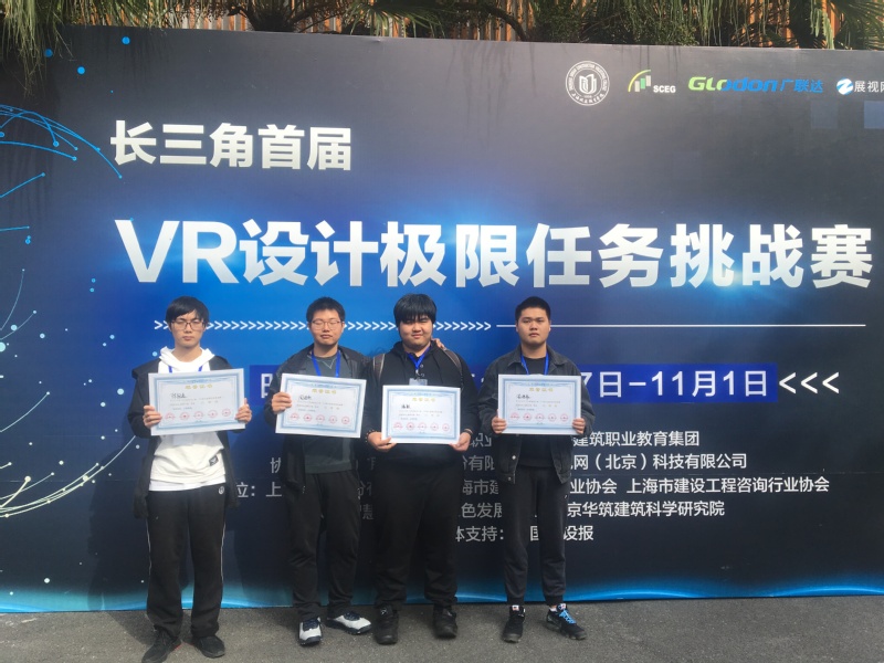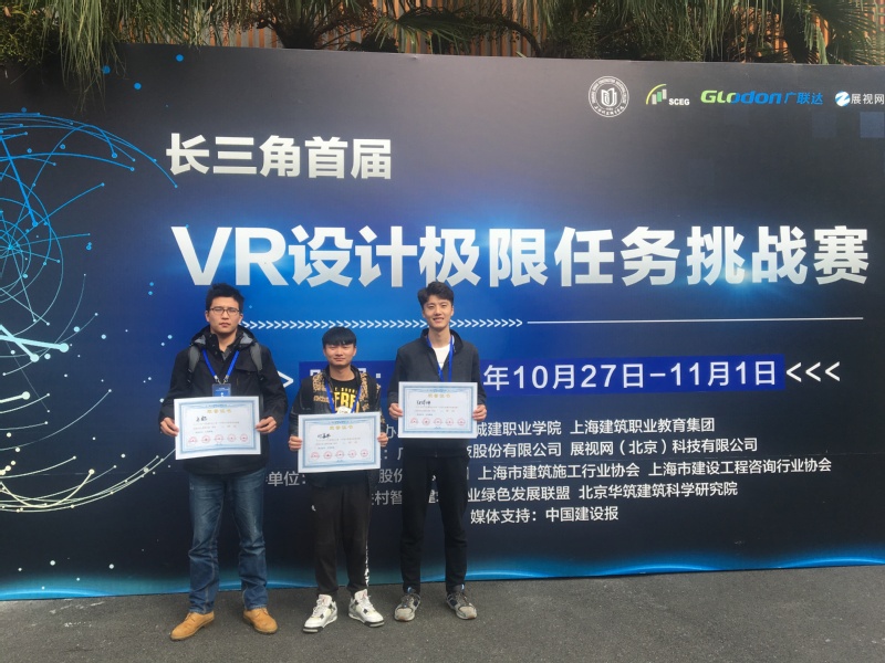 长三角首届“VR设计极限任务挑战赛”于11.1日落下帷幕,此次比赛在上海城建职业学院举办。我院建工系由俞嘉老师领队,朱懿、付嘉伟、张华坤三名同学组成的“济光香饽饽”团队荣获BIMVR类团队二等奖。刘夏虹老师领队,周浩然、李鸿航、潘敏、陈超逸四名同学组成的“筑梦队”荣获BIMVR类团队三等奖。