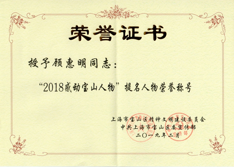 2月28日下午,“致敬追梦人—2018感动宝山人物颁奖典礼”在宝山电视台演播大厅举行。历时六个多月,经过基层推荐、评委初评、网络点赞、社会公示和组委会审定等程序评选产生的10个“2018感动宝山人物”和10个“2018感动宝山提名人物”陆续揭晓。建工系顾惠明老师获评“2018感动宝山提名人物”。
