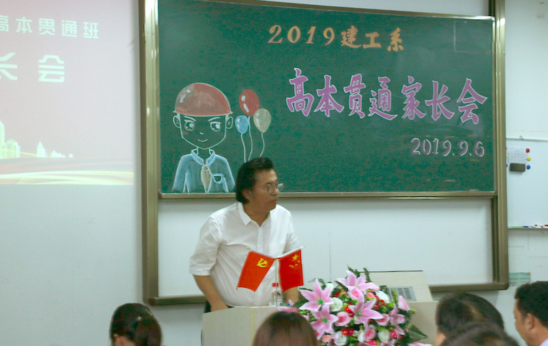 胡展飞副院长给与会家长介绍了设立高本贯通专业的缘由,阐述了该专业的重要性。同时,让在座的每一位家长领会到这个专业是要培养会管理懂技术的高素质人才。