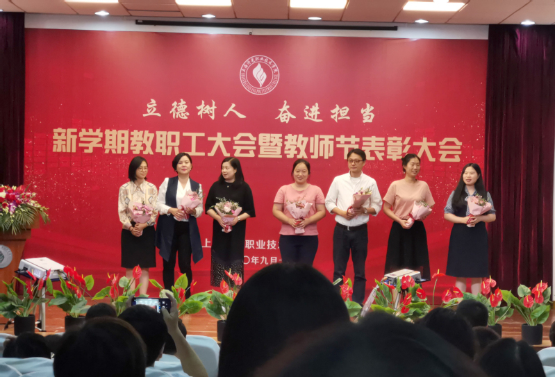 三尺讲台写春秋,一片丹心育桃李。9月10日下午,学院举行新学期教职工大会暨教师节表彰大会,学校全体教职员工参会,共同见证教师们的光荣时刻。党委书记姜富明主持大会,胡展飞副院长宣读学院2019-2020学年教职工表彰的决定,李永盛院长为获奖教职工颁发荣誉证书。其中,我系顾惠明大师荣获“2019年中国技能大赛——第46届世界技能大赛上海市选拔赛”混凝土建筑项目优秀指导教练。方圳海老师荣获首届上海市装配式建筑施工专项技能大赛暨全国邀请赛优秀指导教师和学院“优秀教师”称号,丁芳老师荣获首届上海市装配式建筑施工专项技能大赛暨全国邀请赛优秀指导教师,张雪莹老师荣获2019年“知行杯”上海市大学生社会实践项目大赛优秀指导教师。