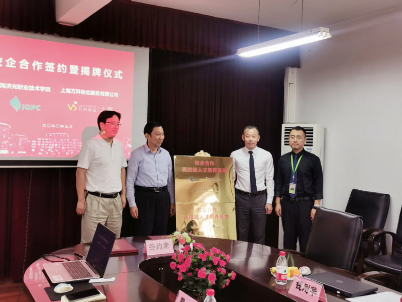 9月21日下午我院建工系与上海万科物业服务有限公司举行了校企合作签约暨揭牌仪式。李永盛院长、胡展飞副院长、柴瑞处长、上海万科物业服务有限公司领导出席了本次揭牌仪式。