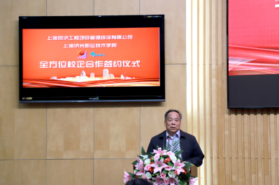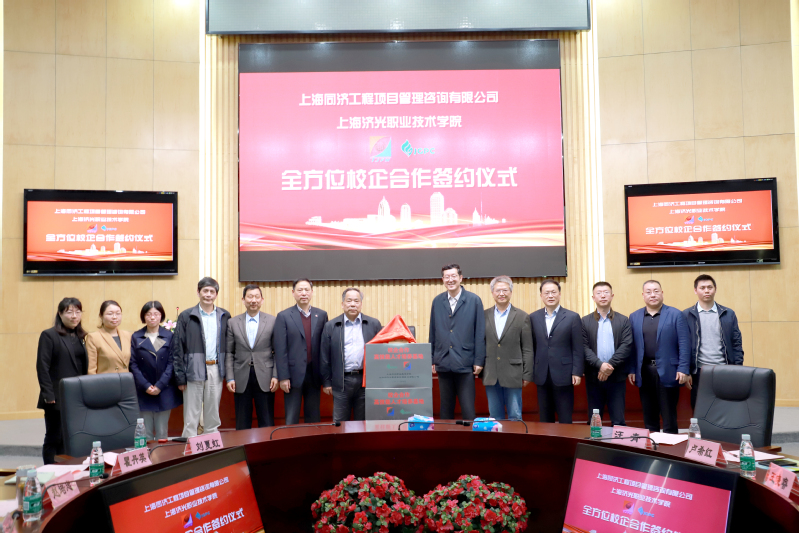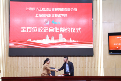 4月21日下午我院建工系与上海同济工程项目管理咨询有限公司在我院圆形会议室举行了全方位校企合作签约暨揭牌仪式。济光学院院长李永盛、党委书记姜富明、副院长胡展飞,上海同济科技实业股份有限公司董事长王明忠、党委副书记兼纪委书记杨卫东,同济项目公司董事长卢本兴、总经理王晓睿、党支部书记兼副总经理卢希红、财务总监汪青一行出席签约仪式。本次签约仪式由济光学院建工系党支部书记刘夏虹主持。