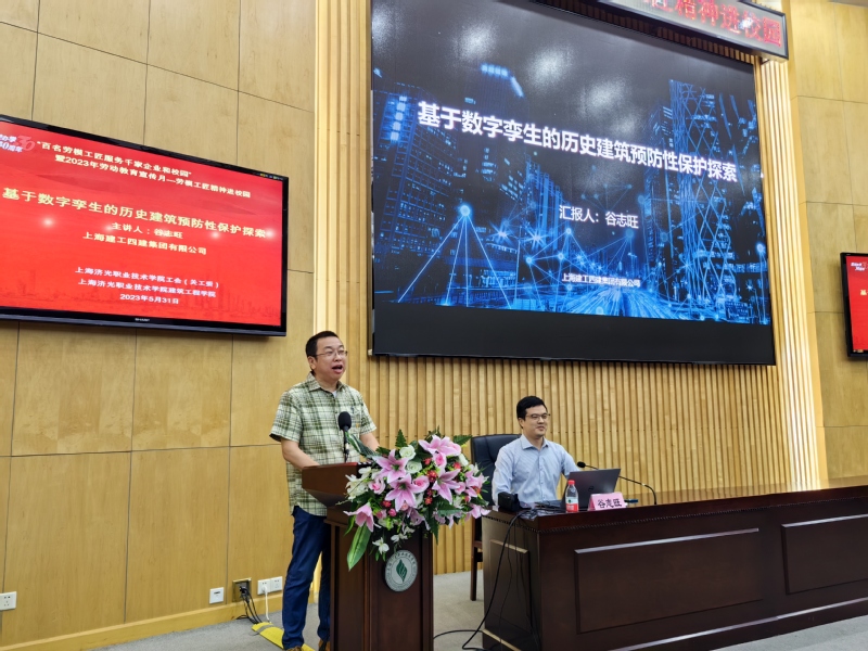 我们有幸邀请到了上海建工四建集团有限公司副总工程师、工程研究院副院长、长三角劳模工匠创新工作室—“谷志旺工匠创新工作室”领衔人,中国民族建筑研究会建筑遗产数字化保护专委会秘书长,上海市优秀技术带头人、上海青年科技英才、上海工匠、上海市青年科技启明星、上海市土木工程科技英才谷志旺,为建筑工程学院师生带来了一场精彩的报告。报告会由副校长、工会主席王云飞主持、建筑工程学院全体教师和学生参加。