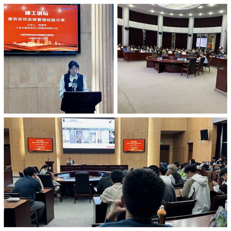 为了提升我院学生的专业素养,拓宽他们的视野,建筑工程学院于2023年10月17日17:30,在圆形会议室举办了一场主题为《建筑装饰装修管理经验分享》的建工讲坛。本次讲座邀请了建筑工程学院杰出校友、2003届房屋建筑工程专业毕业的陆顺军先生,现任上海市建筑装饰工程集团有限公司施工安全总监主讲。建筑工程学院党支部书记刘夏虹主持了讲座,部分教师和学生参与了本次活动。