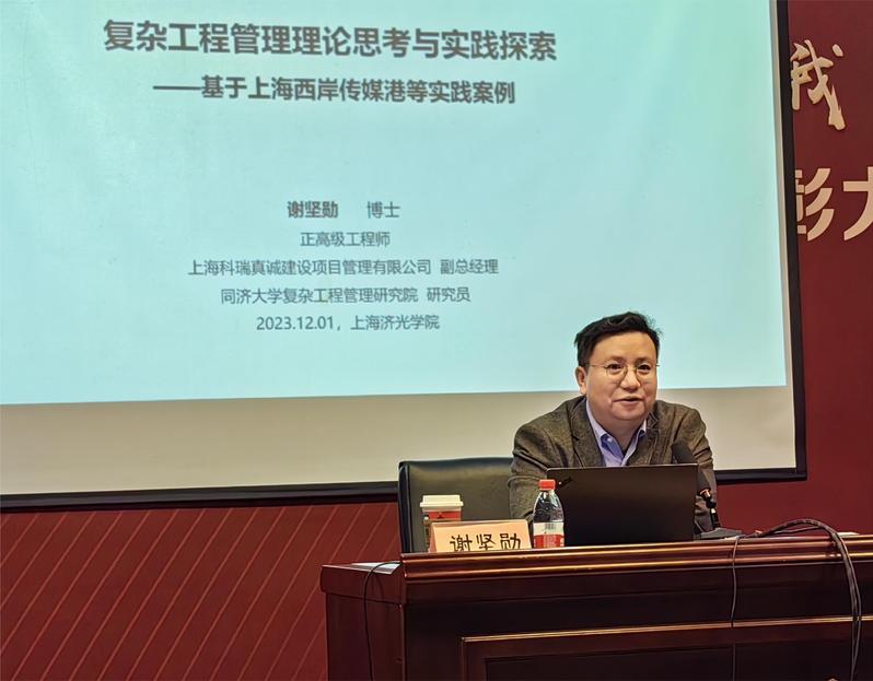本次讲座荣幸地邀请了上海科瑞真诚建设项目管理有限公司副总经理兼同济大学复杂工程管理研究院研究员谢坚勋博士。谢博士以《复杂工程管理理论与实践》为题,分享了他在复杂工程管理领域的专业知识和实践经验。本次讲座由建筑工程学院副院长葛东霞主持,院长曹吉鸣和师生们参加了本次讲座。