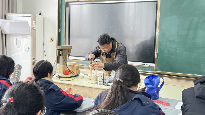 3月6日,一个阳光明媚的日子,我校关工委指导团成员、市教育系统关工委先行先试基层组织人员之一、“上海工匠”、木工大师工作室负责人顾惠明大师,携手工作室团队成员郁勇勇,走进上海市虹口区第52中学的校园,为高一年级选派的50余名学生带来了一场别开生面的木艺与力学知识相结合的反重力装置模型体验课。