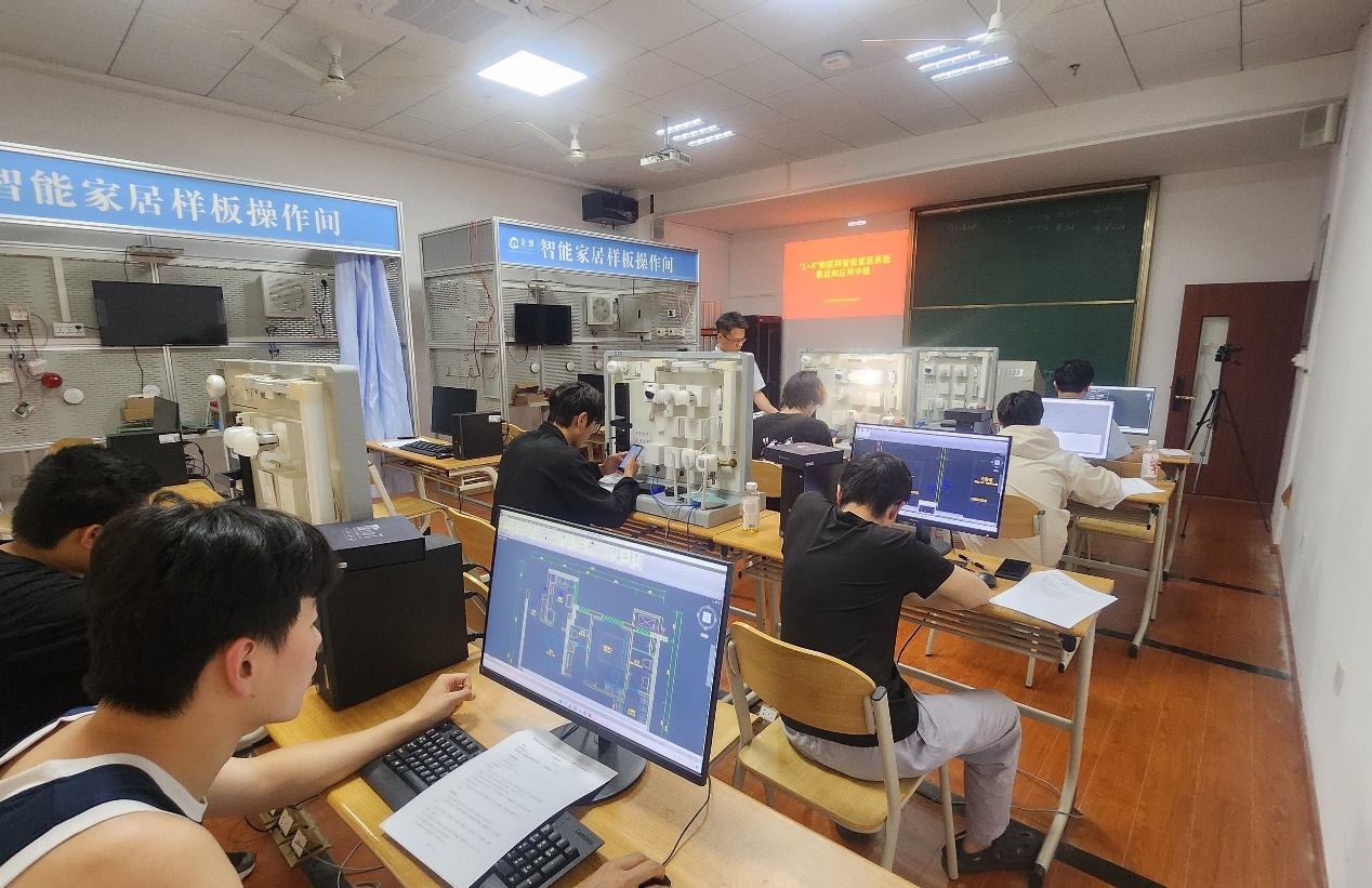 考试分为理论和技能实操两个环节,旨在全面考查学生的专业水平和综合能力。理论采用机考答题的方式,技能实操则从开发板实操、图纸绘制、设备实操、场景设置等四个方面进行综合考核。本次建筑工程学院建筑智能化工程技术12位学生参与考试,考核期间全体工作人员分工明确、履职尽责,严格按照考试规程对学生进行考核,现场秩序井然,考风考纪良好。