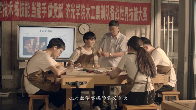 微电影《与木同承》讲述了在上海工匠、我校关工委“五老”顾惠明与徒弟小周(郁勇勇)之间的点滴故事。作为“手艺人”的顾惠明技艺精湛;转为“教书匠”后亲授木艺,与时俱进更新教学模式,成就无数木艺“受益者”。小周在济光学院受教,深受顾老师“授艺人”精神感染,技能精进,志向明确,誓成新时代的木艺传承者。这场师徒间的双向奔赴,让小周享受着筑梦的快乐。顾老师不仅是技艺的“守艺人”,更激励着无数像小周般热爱中华传统的青年,传承木艺之技,共守技艺之光。