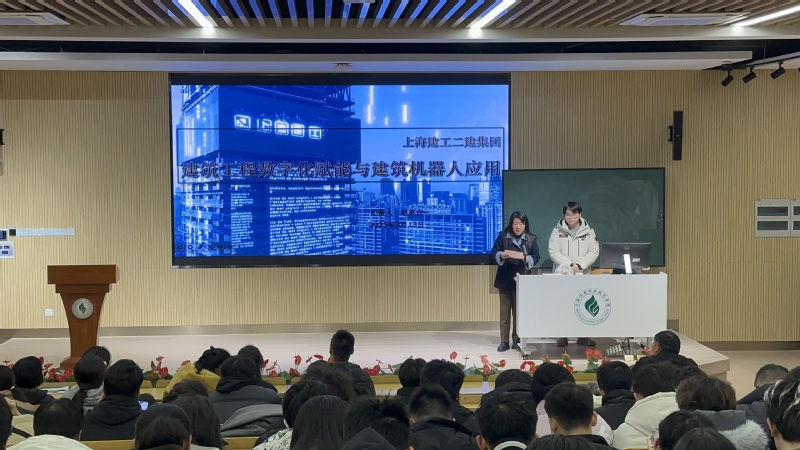 3月13日,建筑工程学院举办专题讲座,特邀上海建工二建集团研究院信息化研究所所长、BIM中心主任赵英吉,为学院师生带来了一场主题为建筑工程数字化赋能与建筑机器人应用的讲座。讲座聚焦建筑行业数智化转型的核心技术,系统展示了智能管理平台、建筑机器人装备及智慧监测体系创新成果及在实际施工中的应用。本次讲座吸引了众多师生参加,现场气氛热烈。