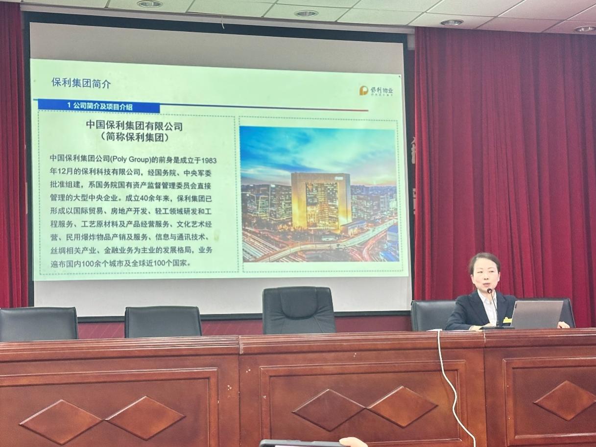 崔陈洁经理向学生们详细介绍了保利物业的发展历程、企业文化及现有项目情况,并重点讲解了今年的岗位需求,包括工程管理、设备运维、客户服务等多个方向。她表示,公司高度重视人才培养,期待与济光学院深化合作,共同打造高素质的物业管理人才。