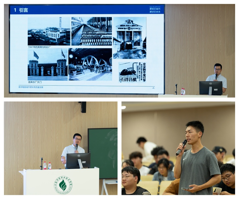 2025年9月23日晚,上海建工四建集团有限公司副总工程师谷志旺受邀在上海济光职业技术学院建筑工程学院为师生们做了一场名为《数字赋能城市更新高质量发展》的讲座。作为城市更新领域的专家,谷志旺从城市更新关键技术、典型案例及发展展望等方面展开,向在场师生们分享了诸如数字测绘与查勘、数字孪生、历史建筑科学修缮、风貌街区高品质更新等内容。