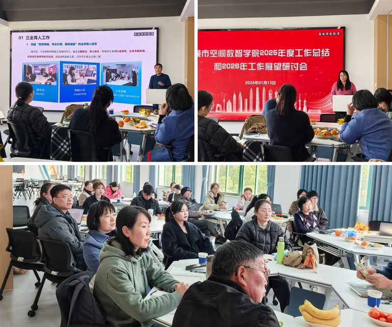 2026年1月13日,城市空间数智学院于城市空间虚拟仿真实训基地举行了“2025年度工作总结和2026年工作展望研讨会”,此次会议聚焦于全面总结2025年我院工作成果,明确2026年工作方向,力求推动学院各项工作再上新台阶。